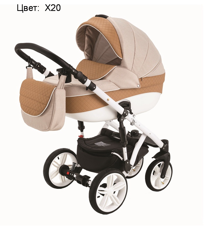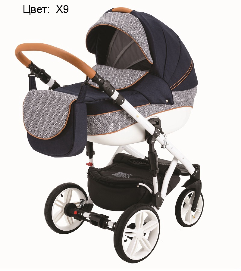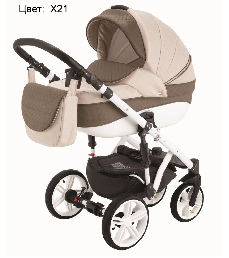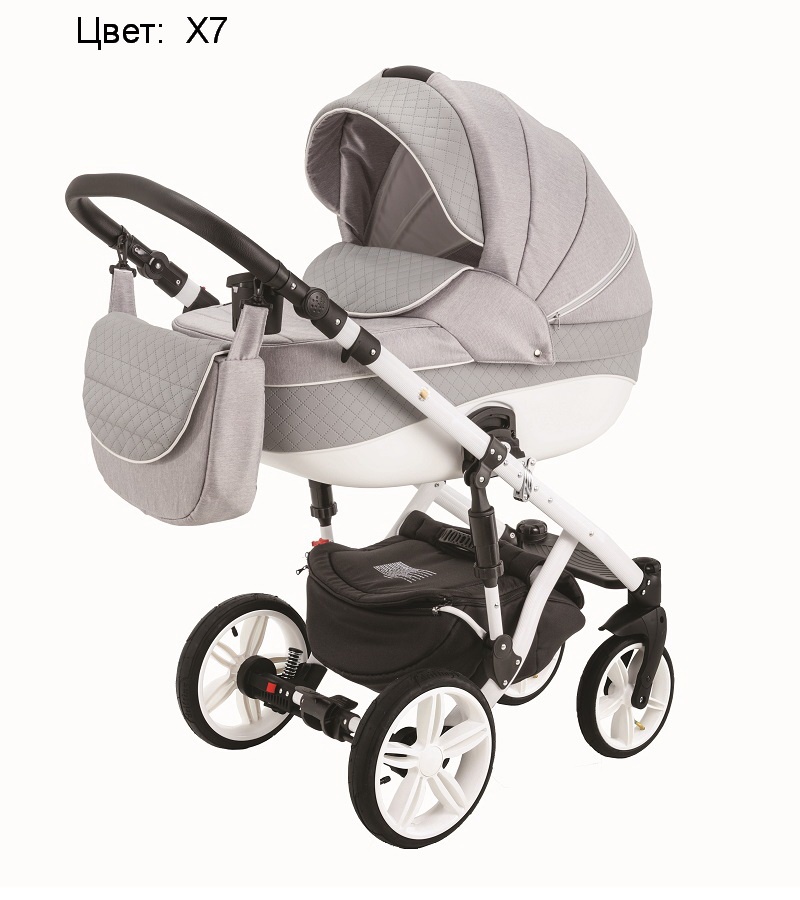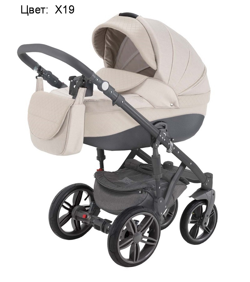 Коляска Адамекс Энкор поставляется в комплекте с закрывающейся вещевой корзиной из прочного текстиля, которая подвешивается над колесами, и сумкой для мамы, пригодной для ношения и на плече, и за спиной. В стандартную комплектацию также включен подстаканник, накидка для защиты от дождя, сетка от насекомых.