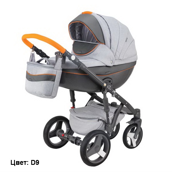 Основой коляски Адамекс Монте Делюкс Карбон 2 в 1 является облегченная складная рама из устойчивого к деформации алюминия с современными двойными амортизаторами. Ручка управления изготовлена из этого же материала и отделана эко-кожей. Ее высота настраивается родителями индивидуально. Рама оборудована большими гелевыми колесами. На вращающихся передних установлена система фиксации прямого хода, на задней оси имеется ножной тормоз. Это делает коляску маневренной и послушной в управлении, позволяет без усилий заводить ее даже на высокие бордюры. Диаметр передних колес меньше задних, ширина колесной базы равна 60 см. Благодаря этому с коляской получится зайти в обычный лифт.