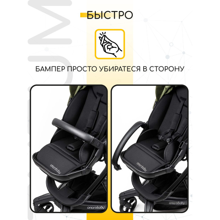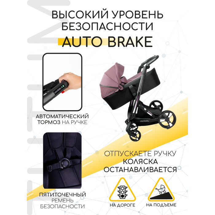 Коляска AmaroBaby Tutum (Амаробеби Тутум) - уникальная детская коляска с системой автоматического торможения. Коляска чувствует ваше присутствие, и как только вы отпускаете руки, коляска плавно останавливается. Уникальный механизм спрятан в родительской ручку, и поможет сделать прогулку более безопасной для ребенка. Система работает от батарейки, хватает заряда примерно на 2 месяца, а после батарейку легко зарядить. В ручке предусмотрен небольшой дисплей с данными о заряде батареи, индикатором движения и индикатором остановки. Так же в коляске предусмотрен обычный стандартный ножной тормоз.