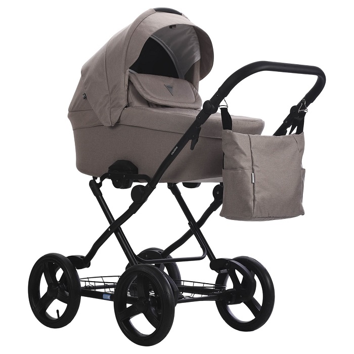 Коляска Aroteam COCOLINE 2 в 1 (аро тим коколайн) – красивая коляска с тканевой обивкой для детей с рождения до 4 лет. Сдержанные расцветки, ни каких лишних полосок, принтов и цветов, все очень дорого и качественно. Черная рама с черными большими надувными колеса и металлическими спицами в цвет подчеркивает и без того утонченный дизайн коляски. Благодаря классической раме у коляски очень мягкий ход независимо от того по каким дорогам вы будете гулять с ребенком. Одна и самых мягких амортизаций. Отличный вариант для зимы и бездорожья.