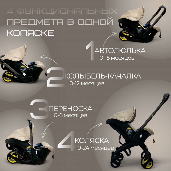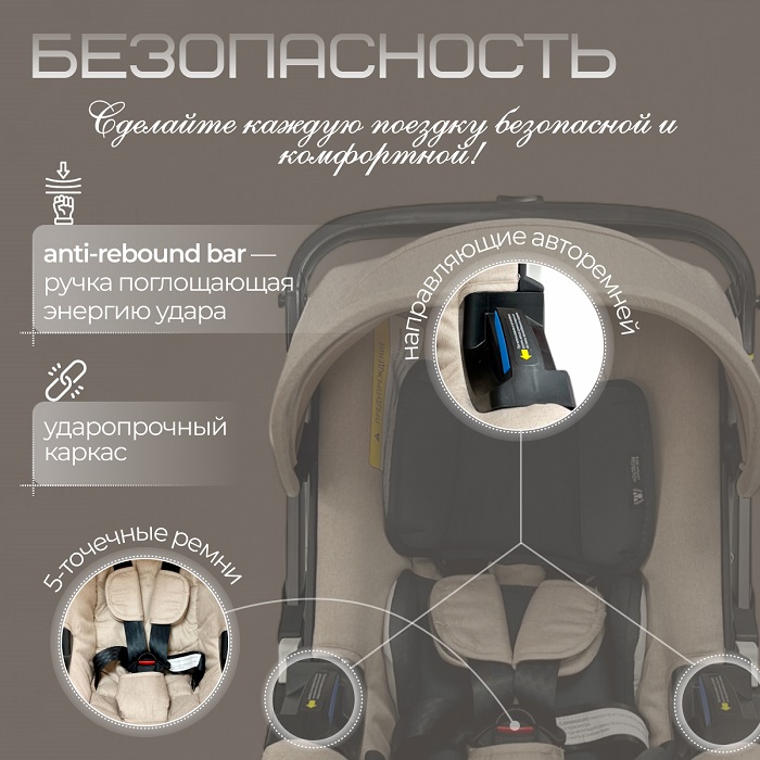 Одним движением трансформируется в удобную переноску — идеально, когда нужно переместить малыша, не беспокоя его сон. Отлично подходит для кафе, поездок и посещения общественных мест.