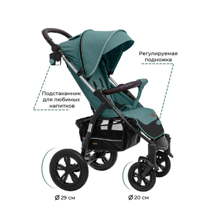 Огромным преимуществом коляски по сравнению с похожими моделями является очень широкое и комфортное сидение для ребенка. Ширина сидения 39 см, что обеспечит ребенку свободу в движении. Даже в объемной одежде ваш малыш не будет скован габаритами коляски. Спальное место вместе с поднятой подножкой в длину составляет 88 см, что обеспечит комфортный сон на свежем воздухе. Сидение мягкое и комфортное, а спинка плавно регулируется до горизонтального положения с помощью рычага.