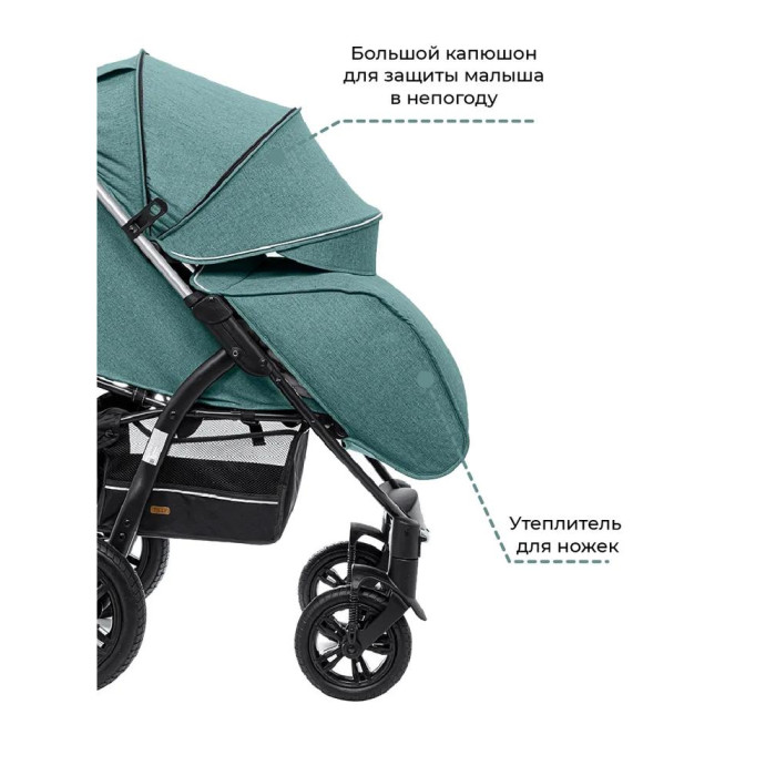 - Большой, глубокий капюшон с надежной защитой от ветра, осадков, яркого солнца. Есть смотровое окошко и вентиляционная секция.