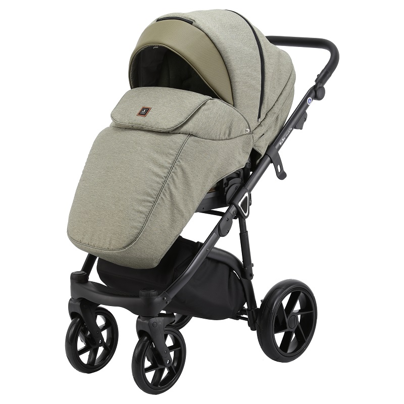 Вместительная люлька для новорожденного оснащена кокосовым матрасиком, белоснежной хлопковой обивкой внутри и удобными регулировками подголовника и капюшона. Накидка на ножки с удобным креплением на люльку имеет большой отворот от ветра, пыли, снега и смотровое окошко для контроля за малышом.