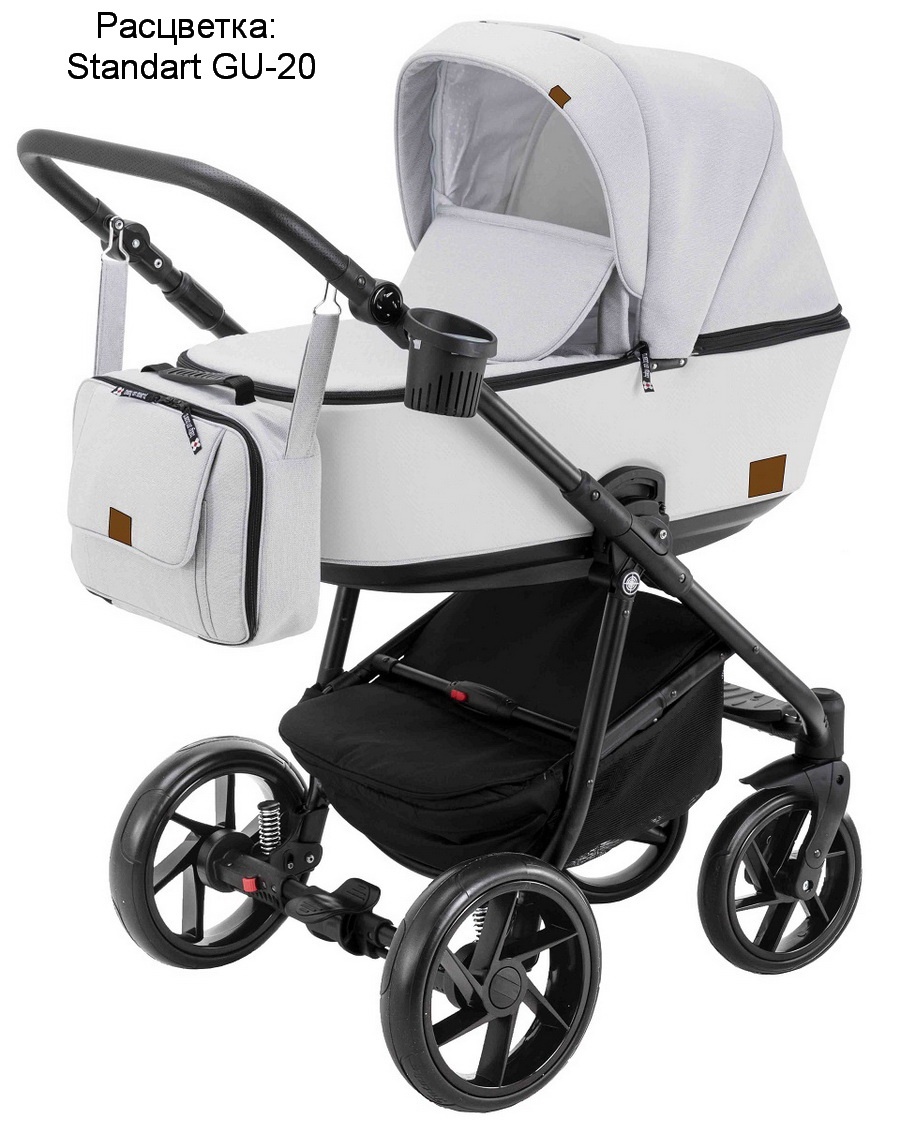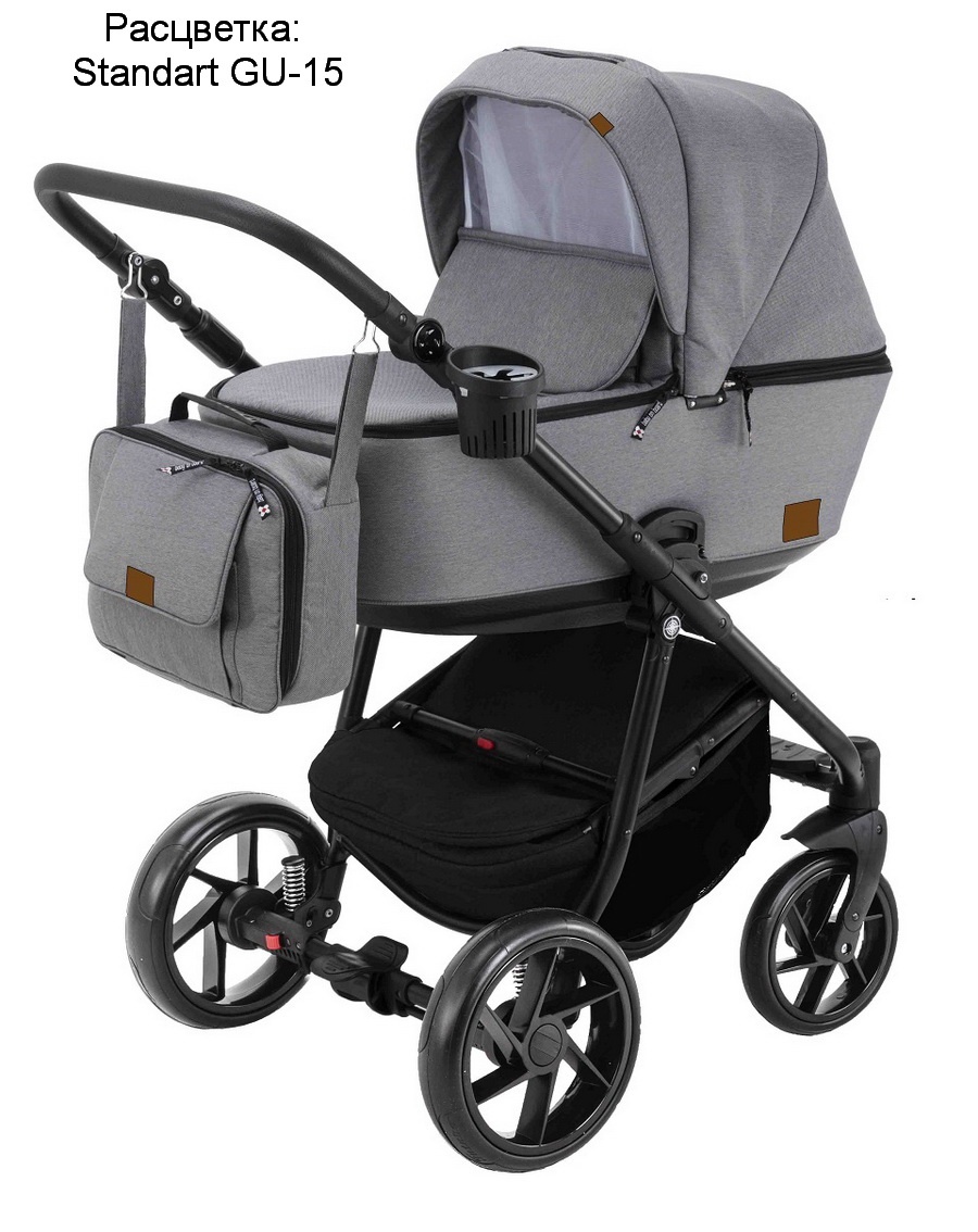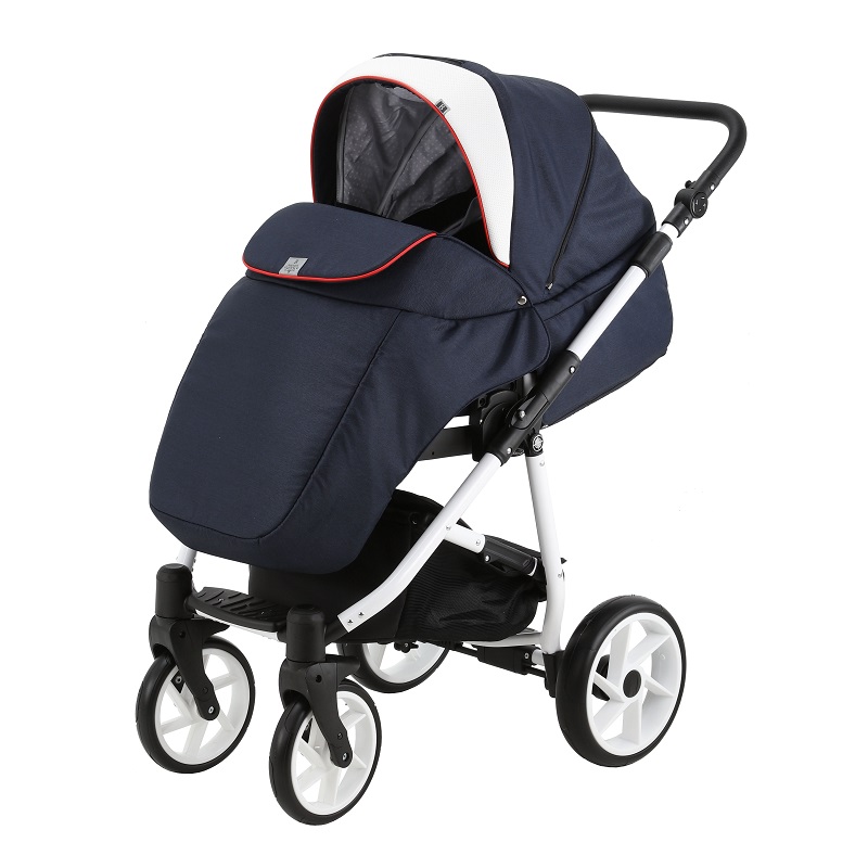 Алюминиевая рама на не прокалываемых гелевых колесах оснащена мягкой амортизацией. Такой транспорт отлично едет по любым дорогам. Закрытая корзина для покупок защитит ваши вещи от загрязнений. В комплекте идут фирменные аксессуары для коляски.