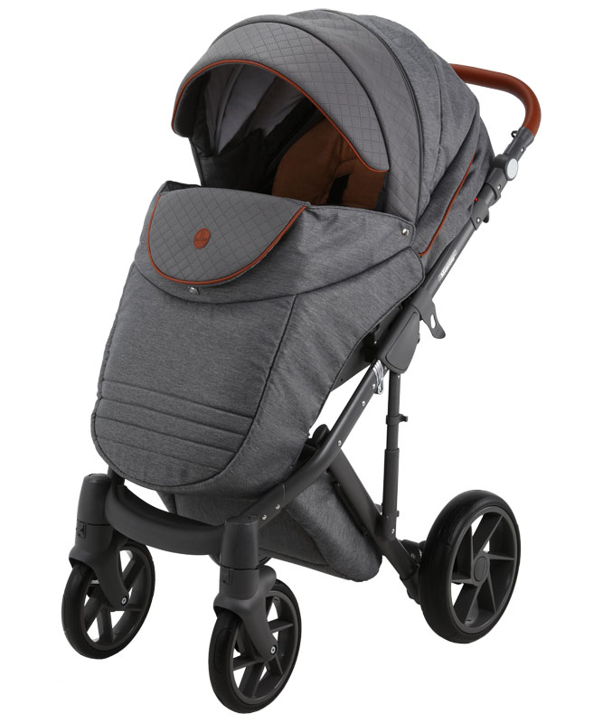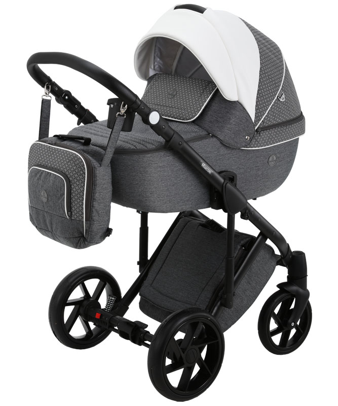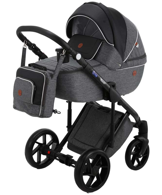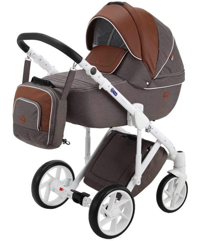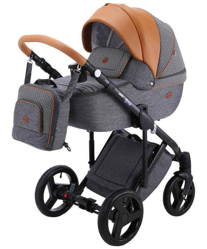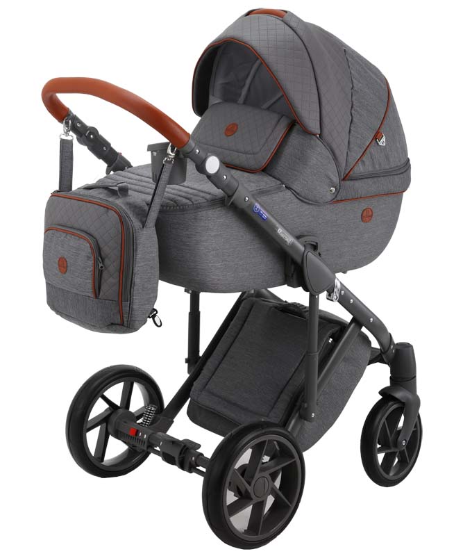 Коляска оснащена современными колесами и мягкой амортизацией. Большая закрытая сумка под коляской защитит вещи от загрязнений. Фирменные аксессуары уже в комплекте, докупать ни чего не надо.