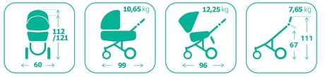 Конструкция данной коляски позволяет устанавливать на нее люльку, сиденье прогулочного блока или автомобильное кресло. Люлька и прогулочный блок реверсивные, их можно устанавливать как «лицом к маме», так и «лицом от мамы». Спальный вариант коляски предназначен для детей в возрасте от 0 до 7 месяцев (весом до 9 кг), прогулочный блок рассчитан на возраст от 7 месяцев до 3 лет (вес ребенка до 15 кг).