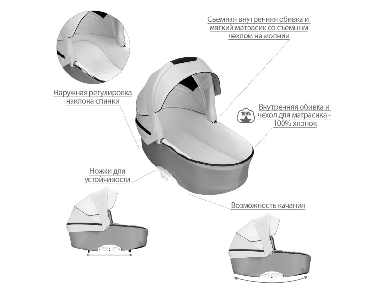 - Чехол люльки с дополнительным бортиком защищающим от ветра и пыли.