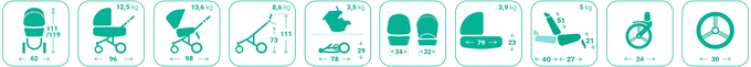 Размер в разложенном виде (ДхШхВ) с люлькой 96х62х(111/119) см ; с прогулочным блоком 98х62х111 см