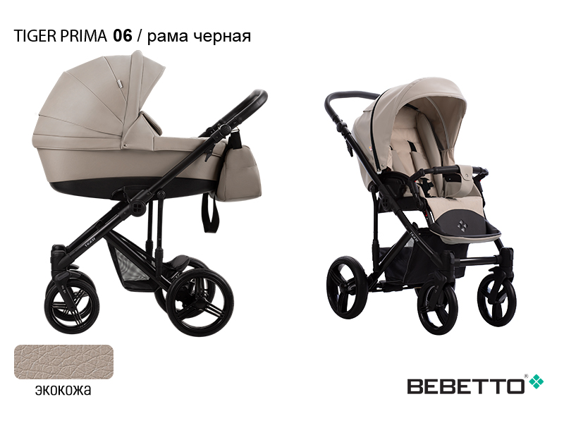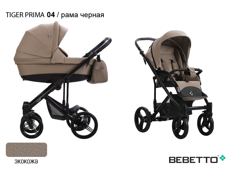 Коляска Bebetto Tiger PRIMA 2в1 (бебетто тигр прима) - коляска из высококачественной эко кожи для ребенка с рождения до 4 лет. Коляска отличается классическим дизайном, яркими трендовыми расцветками и прекрасной проходимостью.