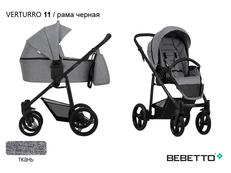 Bebetto Verturro 2 в 1 (Бебетто Вертурро) - это коляска, в которой учтены все пожелания современных родителей: стильный дизайн, легкий вес (люлька + шасси – 11 кг) и отличная амортизация. Отличительной особенностью данной модели является возможность установки люльки на двух уровнях по высоте в зависимости от роста родителей. В данной модели люлька изготовлена из легкого, прочного и инновационного материала, который обладает отличными теплоизоляционными свойствами и является экологически безопасным. Для Вашего удобства в Bebetto Verturro предусмотрено 2 способа регулировки капора спального блока и снятия люльки. В данной модели Вы можете отрегулировать капор легким нажатием на капюшон спального блока сверху или при помощи двух кнопок, расположенных с внутренней стороны люльки. Также Вы можете выбрать способ снятия люльки с шасси: кнопки, расположенные с двух сторон люльки или кнопки, симметрично расположенные на боковых креплениях люльки к раме. А вместительная сумка для мамы с дополнительными кармашками и крепление чехла люльки к спальному блоку с помощью молнии станут приятными дополнениями ко всему вышеперечисленному. Bebetto Verturro - это идеальный выбор заботливых мам.