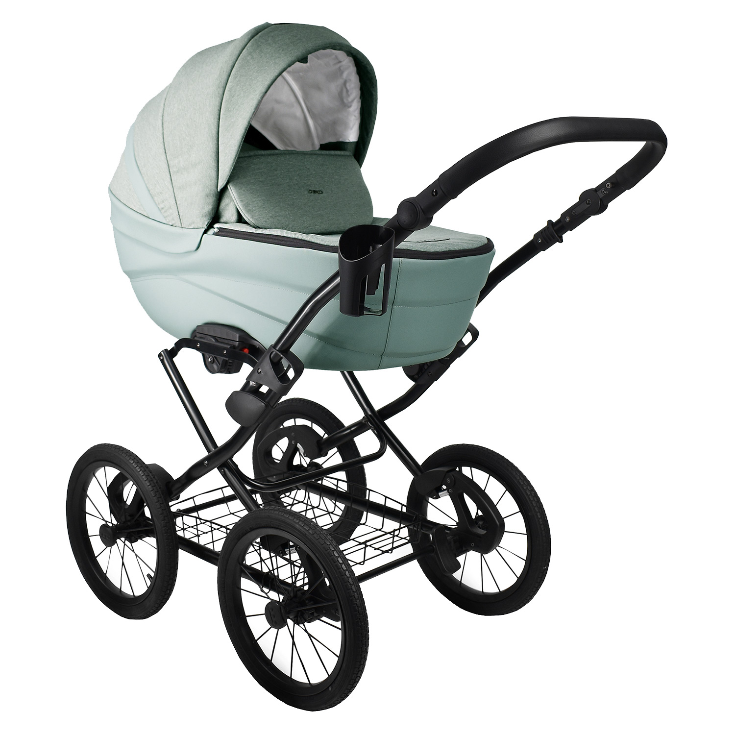 Оба модуля (люлька и прогулочный блок) устанавливаются на раму по ходу и против хода движения. Для новорожденного ребенка предусмотрена просторная люлька с кокосовым матрасиком, высоким ветровиком с силиконовым окошком, чтобы надежно защитить ребенка от любого ветра и осадков. В задней части капюшона предусмотрена вентиляционная секция, для дополнительной вентиляции в теплое время года. Чтобы удобно перенести люльку вместе с ребенком предусмотрена ручка на капюшоне. На ровной поверхности люльку можно использовать как временную кроватку - качалку, для этого на дне люльки предусмотрены специальные полозья.