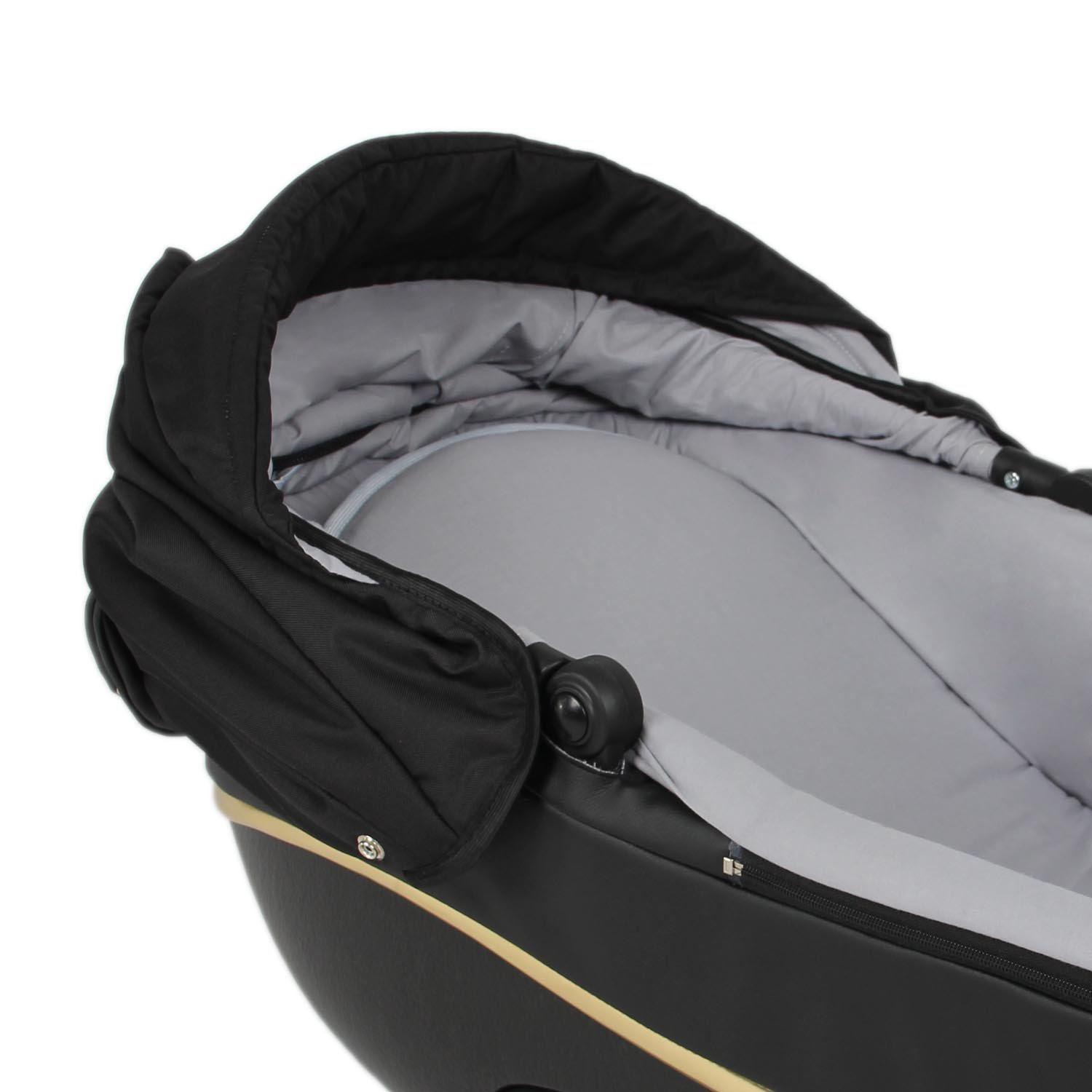 При этом NEXT GOLD так же отлично движется по грунтовым лесным тропинкам и брусчатке в скверах и парках. Задние колеса большого диаметра делают ее проходимой, а система амортизации (пружинные амортизаторы на колесах плюс дополнительная амортизация на раме) обеспечивает абсолютный комфорт маленькому пассажиру. Увеличенный козырек надежно скроет от ярких солнечных лучей, а вентилируемое дно и вентиляционная вставка из сетки спасут в жаркую погоду. Переносить люльку удобно за ручку в капюшоне.