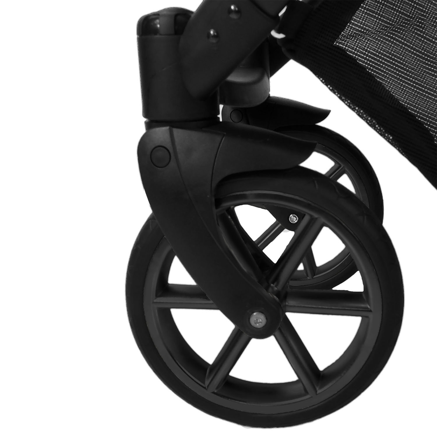 - Передние колеса поворотные с фиксацией и системой антишок