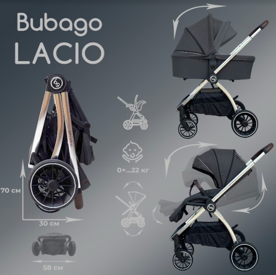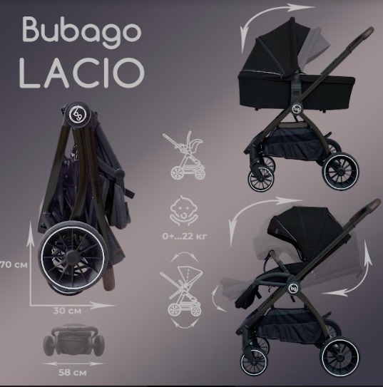 Коляска Bubago Lacio 3 в 1 (Бубагоу Ласио) - практичный, легкий и надежный транспорт для ребенка с рождения до 3 лет. Коляска Bubago Lacio это всесезонная коляска, которая поможет в ежеденевных прогулках с ребенком, сделая прогулку более комфортной и удобной для ребенка и его родителей.