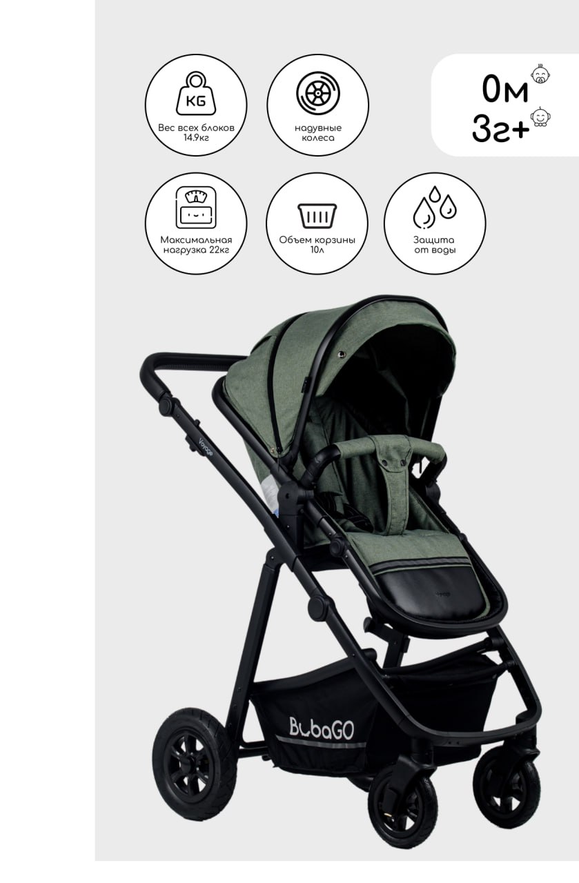 Коляска Bubago Voyage 2 в 1 2023 (бубагоу вояж) - всесезонная коляска для ребенка с рождения до 3 лет. Коляска отличается небольшой ценой, большим функционалом и отличной проходимостью. Коляска оснащена надувными колесами и современной амортизацией, которые позволят гулять с коляской по любым дорогам. Маневренность и легкость в управлении обеспечивается передними поворотными колесами и удобной регулируемой по высоте ручкой. Прочная рама компактно складывается для поездок на машине или удобного хранения.