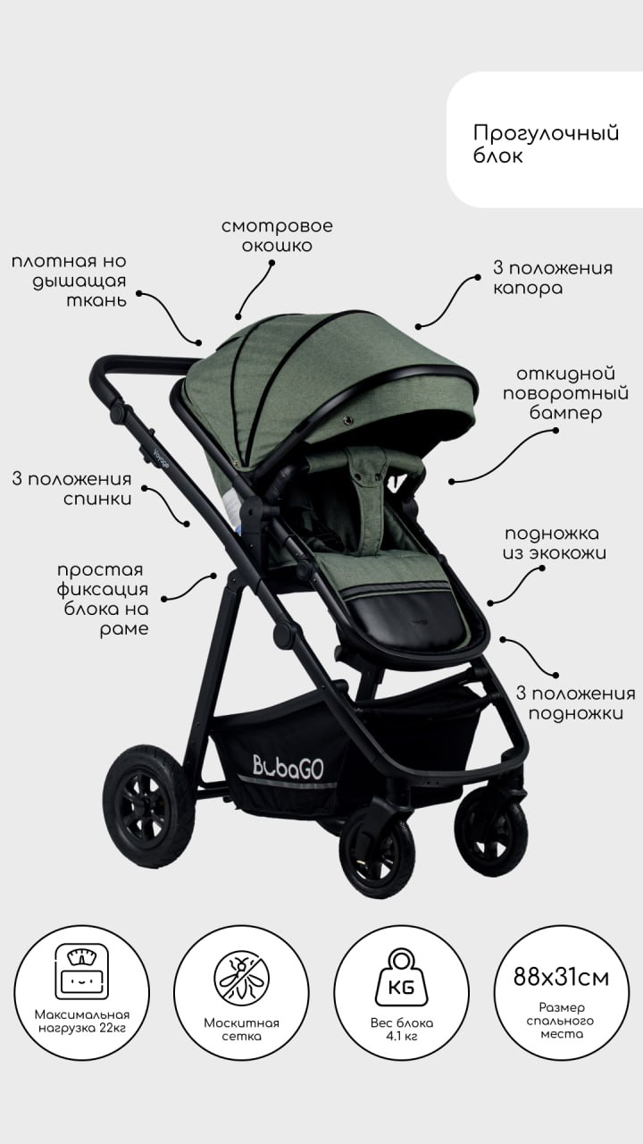 Особенности коляски Bubago Voyage 2 в 1 2023: