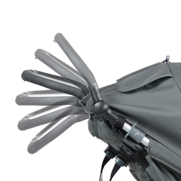 - Большой капюшон с дополнительным козырьком от солнца, смотровым окошком на магните и отстегивающейся спинкой.