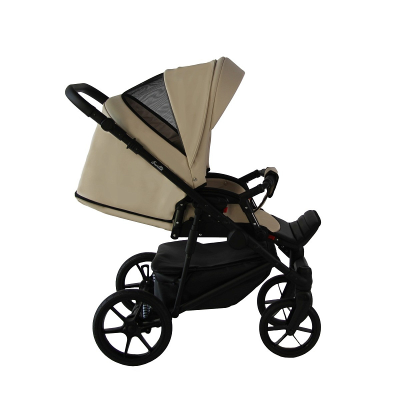 Коляска Sevillababy Tisso 2 в 1 (Севиллабеби Тиссо) - коляска с идеальным сочетанием стильного внешнего вида, большого функционала и отличных ходовых качеств. Коляска отлично подойдет для ребенка с 0 до 3 лет и состоит из легкого шасси с большими надувными колесами и 2 съемных модулей: люльки и прогулочного блока. Обивка коляски выполнена из качественной, плотной эко кожи, которая прекрасно подойдет для прогулок в любую погоду. Такая обивка защитит ребенка от ветра и осадков, не впитывает влагу и хорошо себя ведет при перепадах температуры. В холодное время года коляска надежно закроет малыша с помощью глубокого капюшона и накидки на ножки с высоким отворотом. Накидка надежно фиксируется к люльке с помощью молнии и препятствует задуванию. В теплое время года у коляски предусмотрены вентиляционные секции, которые улучшат вентиляцию внутри коляски и создадут приятную прохладную атмосферу внутри.