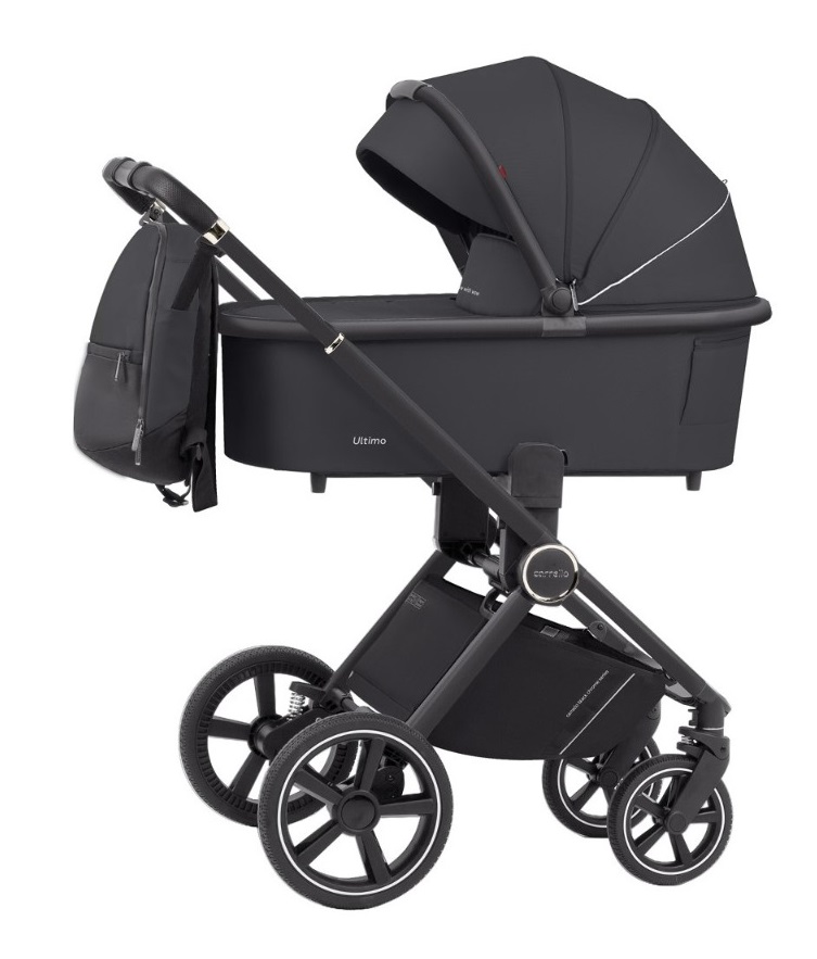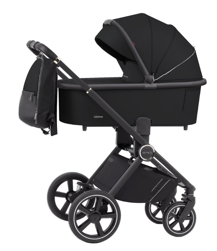 Коляска Carrello Ultimo 3 в 1 черная рама (Каррелло Ультимо) - дизайнерская коляска на больших резиновых колесах, которая удивит вас не только своим внешним видом, но и большим функционалом и качественными материалами. Коляска представлена на алюминиевой облегченной раме. Капюшон коляски выполнен из плотного многослойного текстиля премиум класса с объемным логотипом и надписями. Текстиль коляски обладает водоотталкивающими свойствами, а так же защитит ребенка от УФ лучей (upf 50). Такая обивка позволит гулять с ребенком в любую погоду, не переживая за комфорт крохи.
