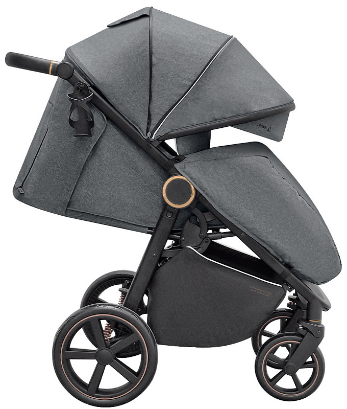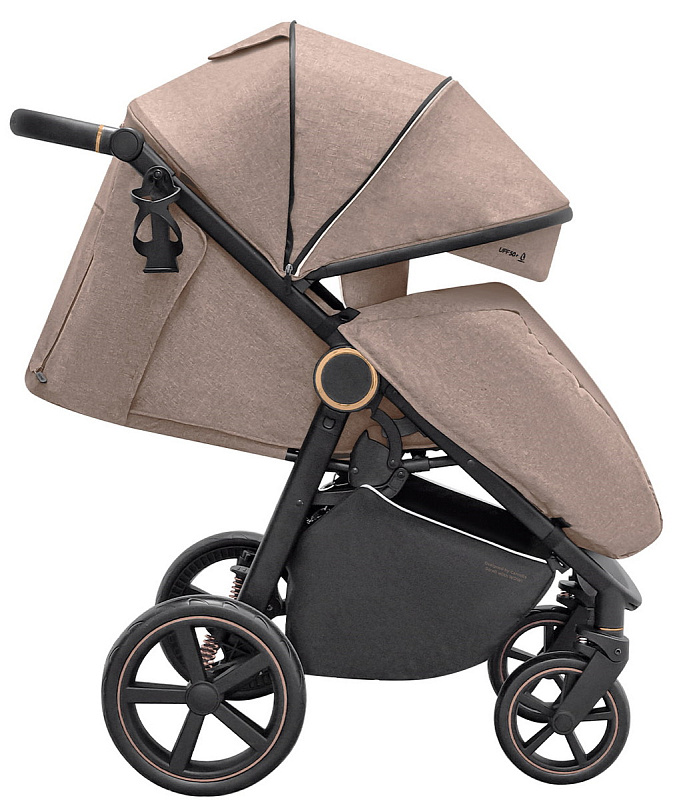 Одним из достоинств коляски являются большие, всепроходимые колеса. Они не боятся проколов, не сдуваются и отлично ведут себя при низких температурах. Регулируемая пружинная амортизация позволят настроить ход коляски в зависимости от качества дорог и веса ребенка. Передние колеса поворотные на 360 градусов, что позволяет удобно управлять коляской. Ручка для родителей регулируется по высоте.