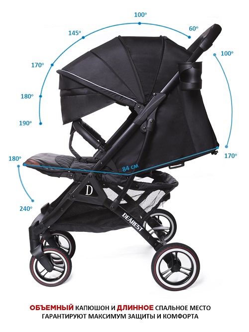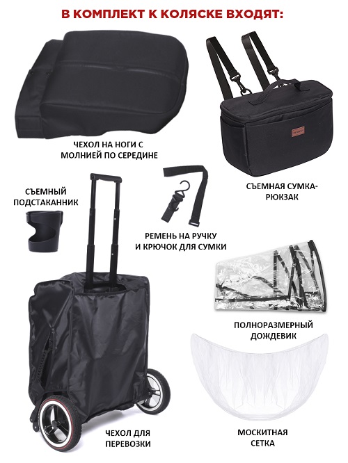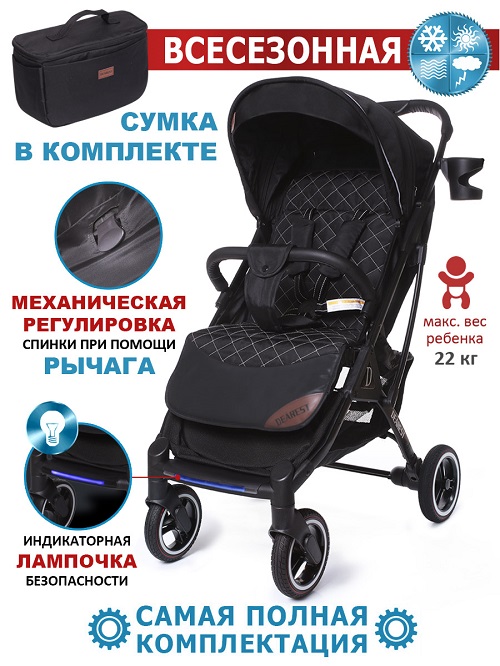 В коляске DEAREST 819 PLUS предусмотрена большая комплектация: сумка - органайзер для мамы, удобный дождевик, москитная сетка, подстаканник и даже сумка - чехол для защиты коляски от загрязнений во время путешествий.