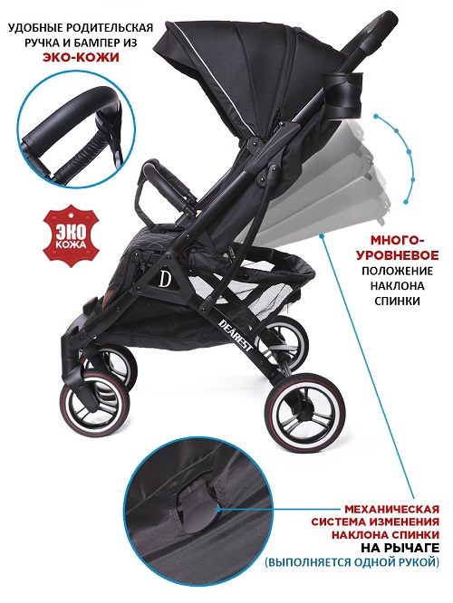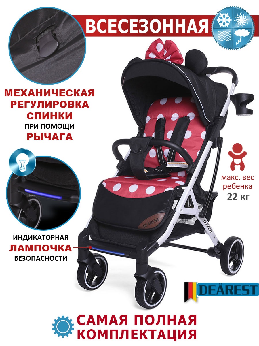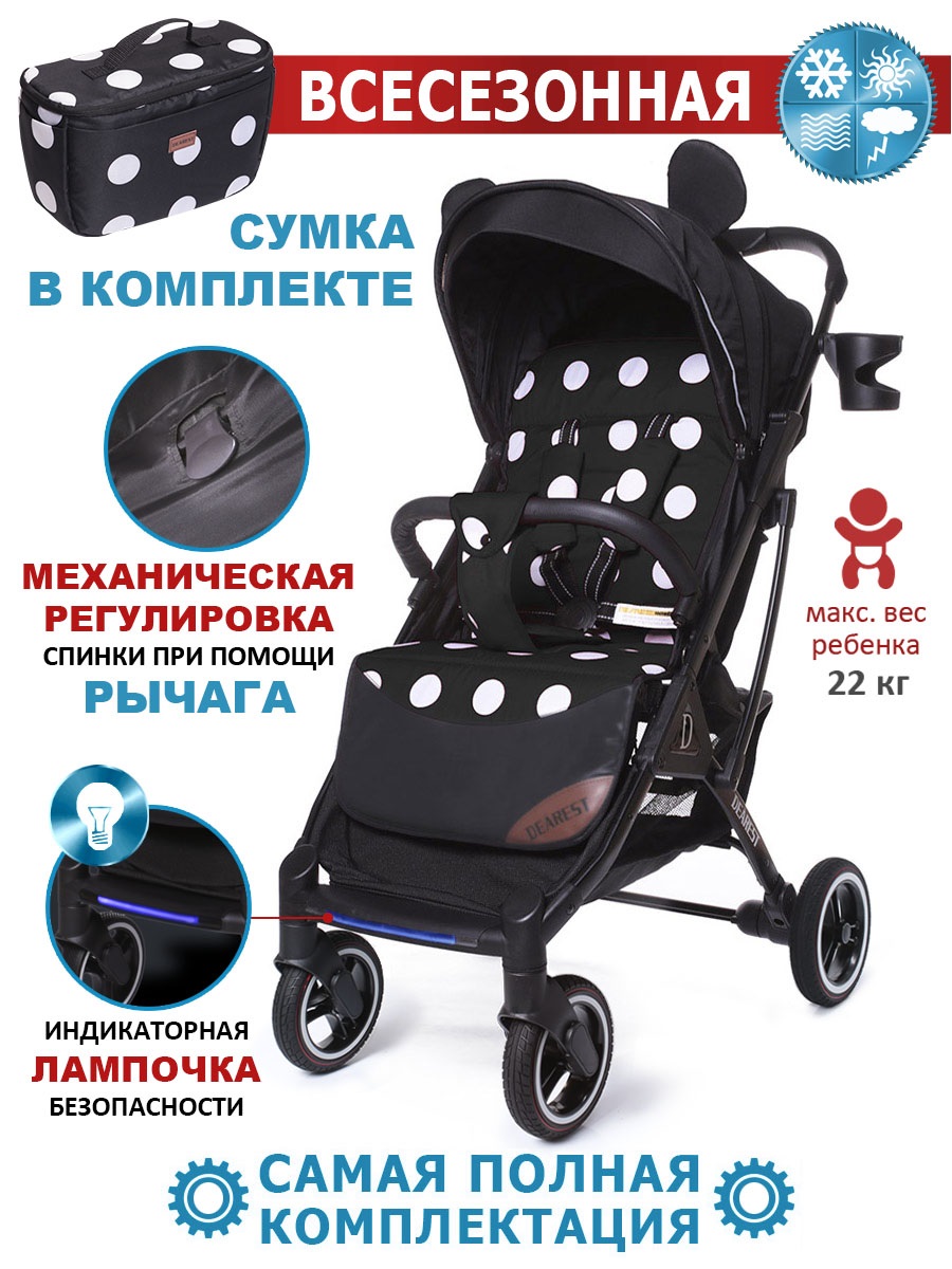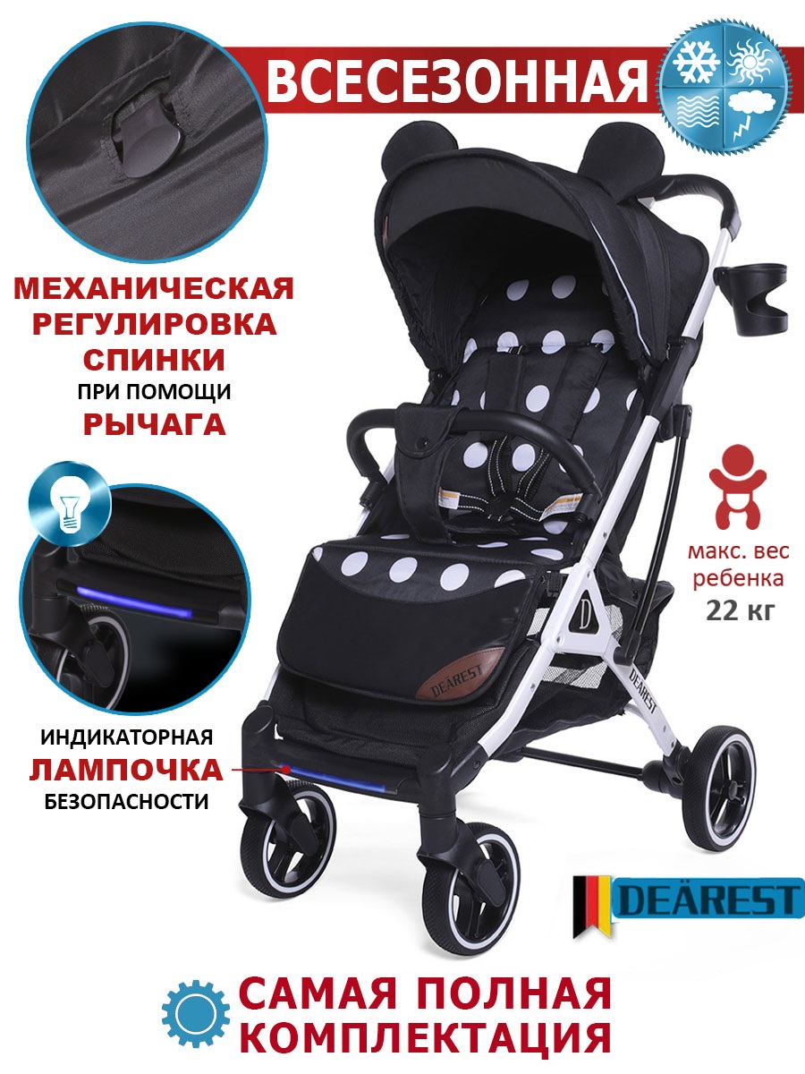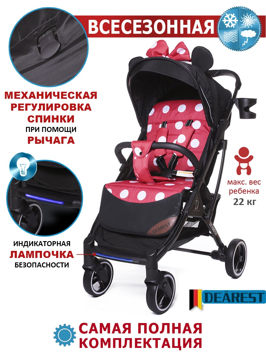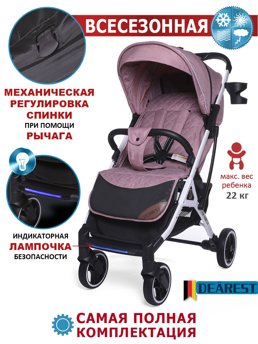 Коляска DEAREST 819 PLUS (Диарест 819 плюс) - легкая, компактная коляска с максимальной комплектацией для ребенка с рождения до 5 лет. Идеальное решение для путешествий, а так же для тех, кто ищет легкую коляску на каждый день. Коляска весит всего 8,9 кг и очень компактно складывается, позволяя брать ее с собой в любую поездку и путешествие (даже на борт самолета). При этом это полноценный "внедорожник" с крепкой, надежной алюминиевой рамой и современными резиновыми колесами с гелевой прослойкой. Такие колеса упругие, износостойкие, не боятся проколов и порезов, не требуют подкачки и не зависят от температурных колебаний на улице. Все колеса оснащены подшипниками и амортизацией, поэтому коляска едет тихо и плавно, максимально защищая ребенка от вибрации от дороги.