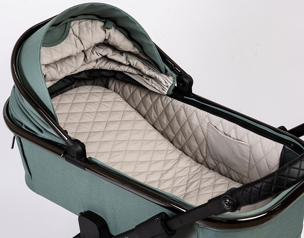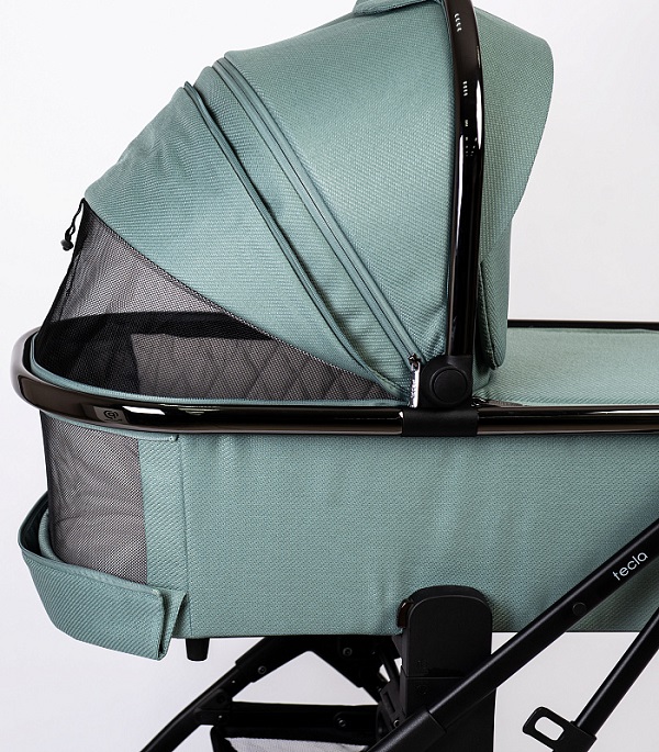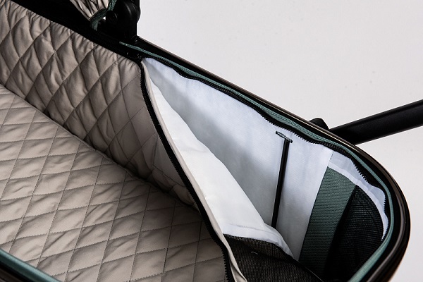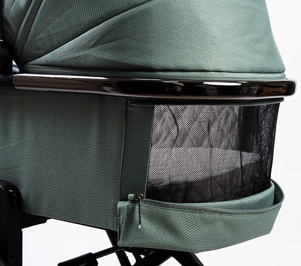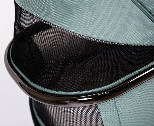 Для лучшей циркуляции воздуха в жаркие летние дни в капоре люльки и у изголовья есть москитная сетка, спрятанная под молнией
