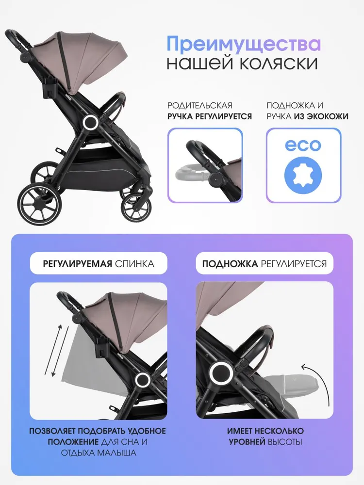 - Родительская ручка и бампер выполнены из экокожи.