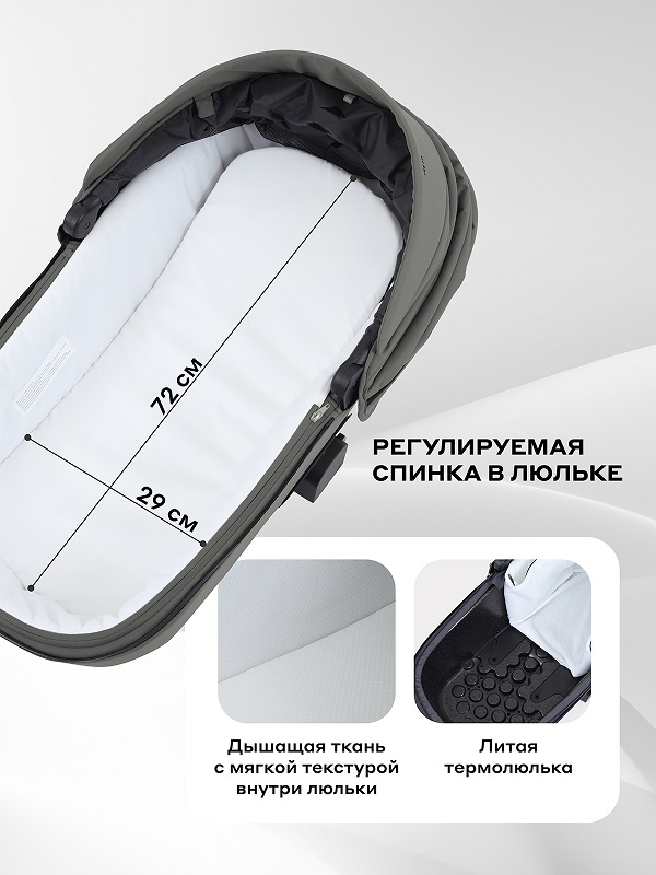 - Размер спального места люльки (Д x Ш x В): 72 х 29