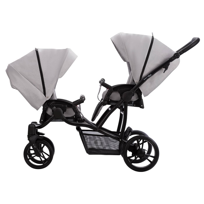 Детская коляска для двойни Bebetto 42 2 в 1 (бебетто 42) - универсальная коляска для двоих детей с рождения до 4 лет. Коляска отличается легким весом, компактностью и, несмотря на то, что предназначена для двоих детей прекрасно управляется. Коляска легко преодолевает ямки, залазит на бордюры и легко едет по любым дорогам. Каждый блок модели можно легко ставить по ходу и против хода движения, что позволит родителям везти детей, так как им будет удобно. Блоки ставятся паровозиком, благодаря чему коляска по ширине проедет в любые двери и проемы. У каждого ребенка будет свое удобное, вместительное спальное место. Люльки для новорожденных выполнены с учетом потребностей новорожденных. Это ровное дно с мягким матрасиком, высокие бортики, хлопковая съемная обивка внутри и прекрасная защита от любой непогоды.