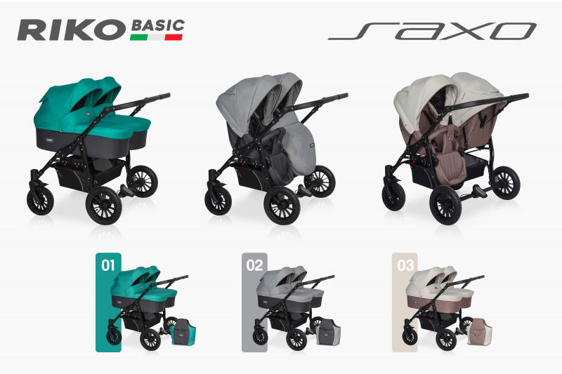 Коляска для двойни Riko Basic Saxo 2 в 1 (Рико Бэйсик Сахо) - это классическая модель 2 в 1, рассчитанная на детей с первых дней их жизни и до 3-4 лет. Конструкция коляски специально разработана для двойни, где люльки расположены параллельно друг другу. Это польская новинка представлена в пяти цветовых оттенках с обивкой из плотной водоотталкивающей ткани.