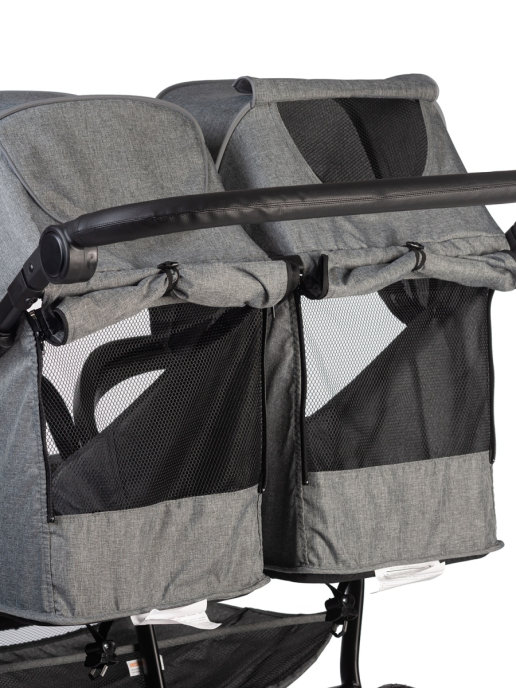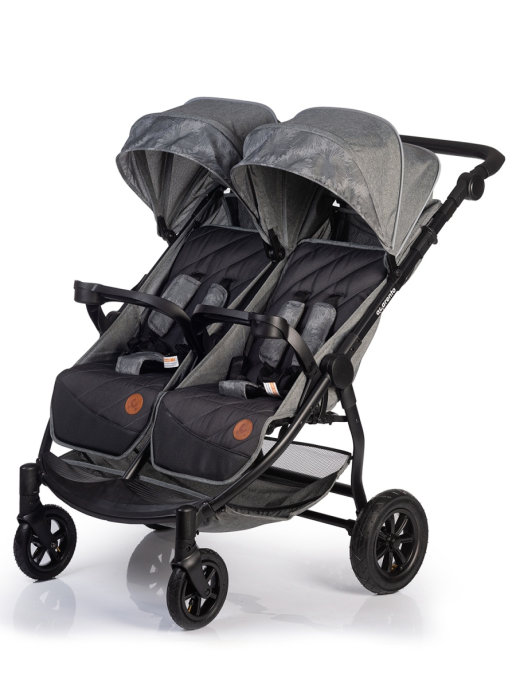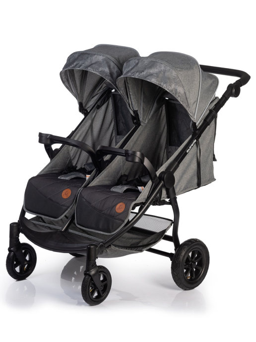 Коляска Acarento PREVALENZA DUO для двойни (Акаренто Преваленса Дуо ) - практичная и удобная коляска для прогулок с двумя детьми. Она подойдет для двойняшек и погодок, ведь у каждого ребенка будет свое удобное место с индивидуальными настройками спинки и подножки. Пока один малыш спит, второй может спокойно ехать, гулять и играть. Большое преимущество модели в глубоком капюшоне и удобных накидках на ножки, благодаря чему в любую погоду дети будут надежно защищены. Коляска имеет небольшой вес и с ней будет удобно даже миниатюрной маме. Большие надувные колеса сделают ход коляски мягким и бесшумным, а ямы и неровности дороги будут преодолеваться с легкостью. Для родителей разного роста предусмотрена ручка с регулировкой по высоте. Передние колеса поворотные, что сделает управление коляски еще более удобным.