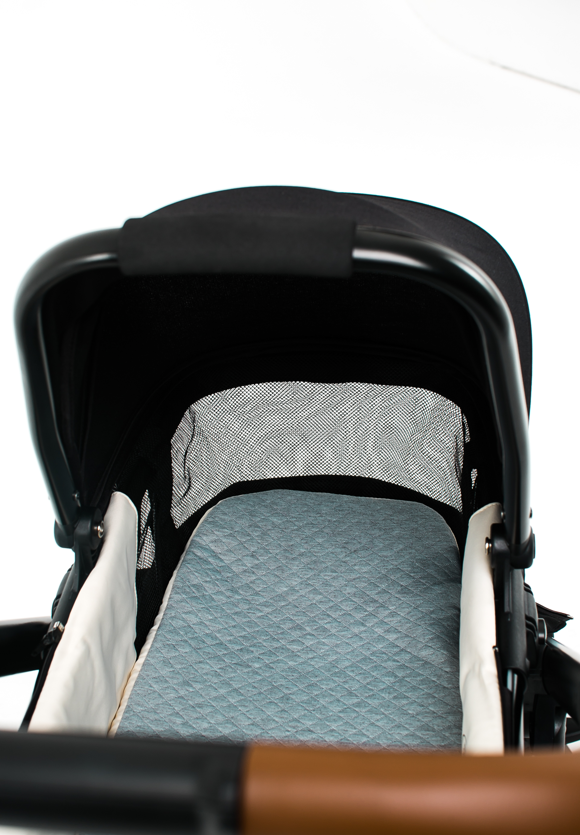 Люлька коляски BabyZz Dynasty выполнена из плотного итальянского текстиля. Ткань легко очищается от загрязнений с помощью щетки, водоотталкивающая и не продуваемая. В нашей люльке малышу будет комфортно в любое время года. В изголовье вшит вентилируемые карман, который Вы можете открыть летом в особо жаркий день. Обшивка матрасика люльки выполнена из натуральной, мягкой хлопковой ткани. Также в комплекте люльки входит дополнительный бортик в изголовье, выполненный из той же ткани что и матрасик, для дополнительного комфорта Вашего малыша. Капор люльки регулируется с помощью кнопки, и имеет дополнительный солнцезащитный козырек. Ручка для переноса люльки вшита в капор. В комплект также входит накидка с возможностью увеличения защитного бортика.