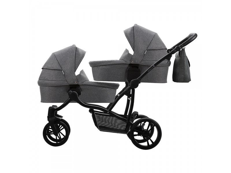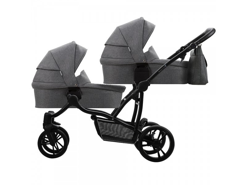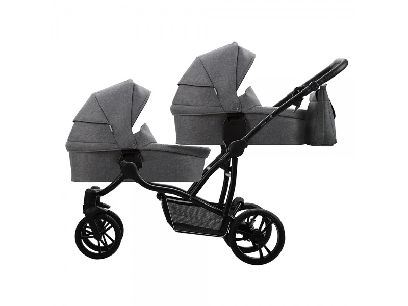 Люльки выполнены из плотной тканевой обивки с водоотталкивающим эффектом и защитой от УФ лучей 50+. Внутри 100% хлопок, мягкий матрасик и регулируемый подголовник. Для комфортных прогулок в любое время года предусмотрен удобный капюшон с вентиляционной секцией на молнии и накидка на ножки.
