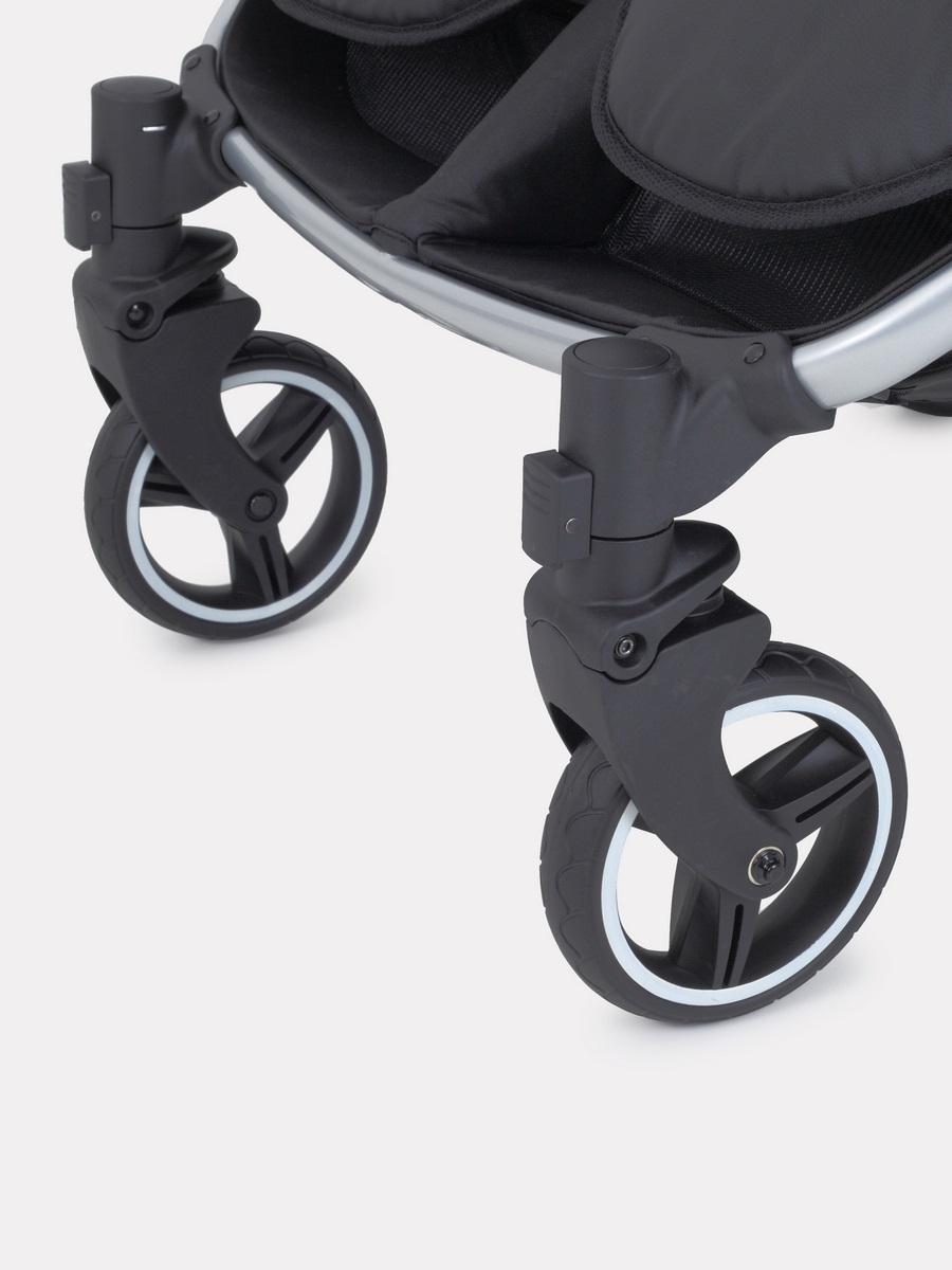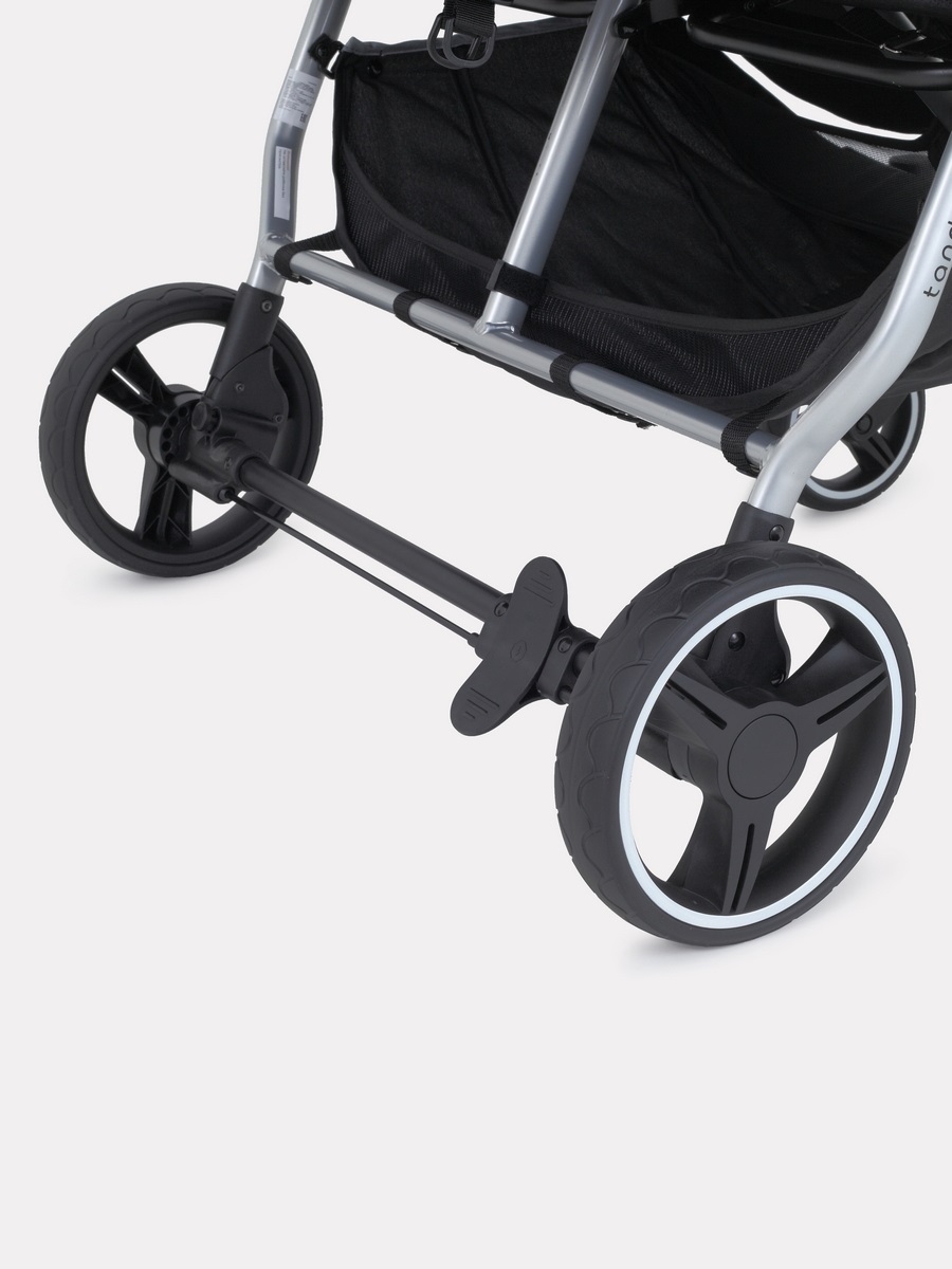 Коляска оснащена облегченной, противоударной рамой. Сложение коляски осуществляется одной рукой. Колеса модели гелевые (резиновые колеса с гелем внутри). Такие колеса не прокалываются, не боятся температурных колебаний и отлично амортизируют на дорогах. Передние колеса оснащены системой антишок, специальной системой, которая сглаживает удары передних колес при встрече с препятствиями, попадаем в ямы, наезд на бордюры.