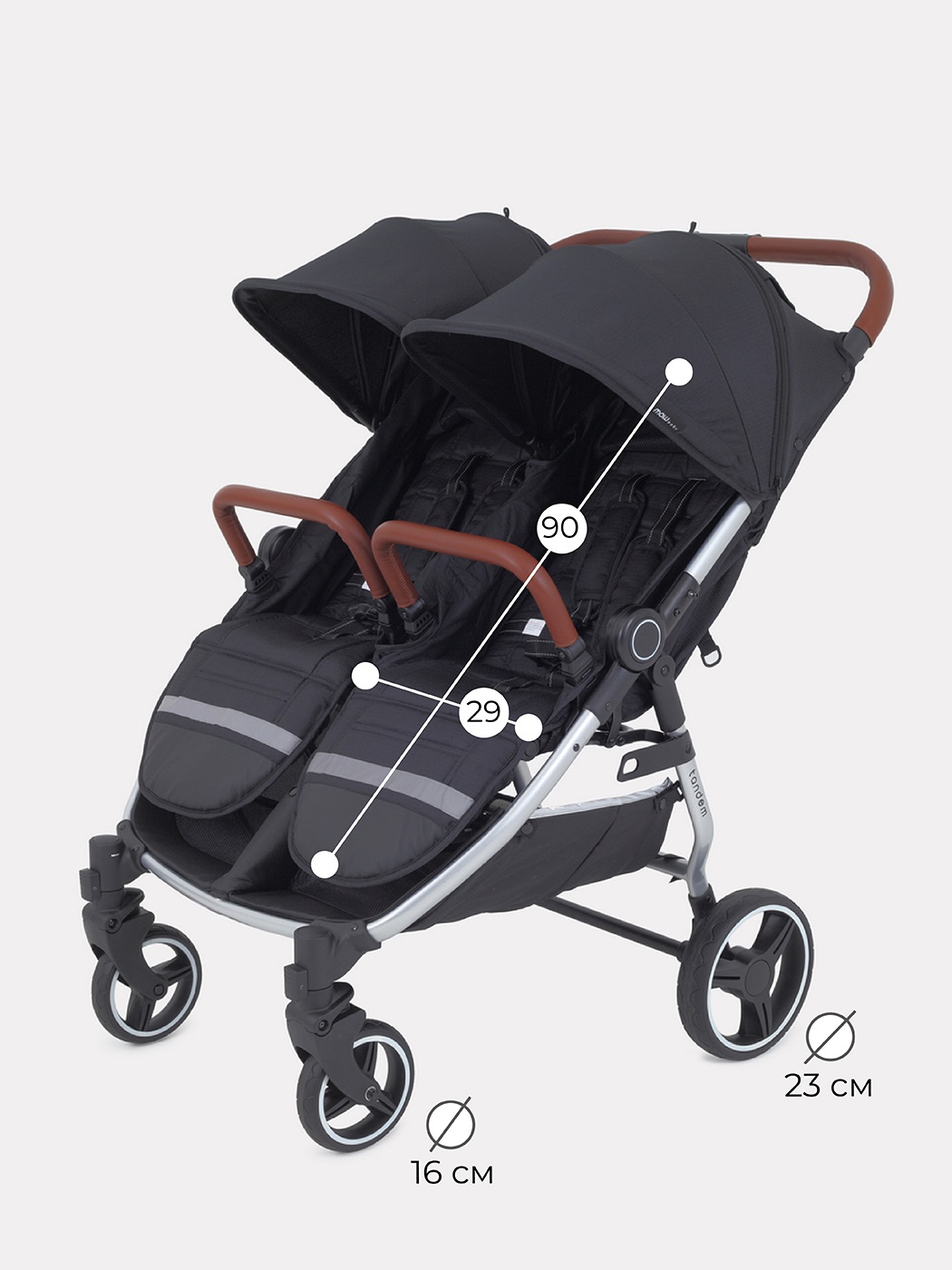 - Диаметр колес 16 и 23 см