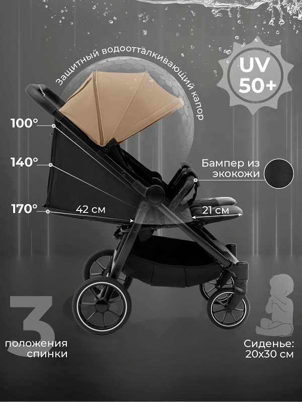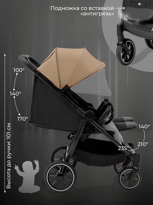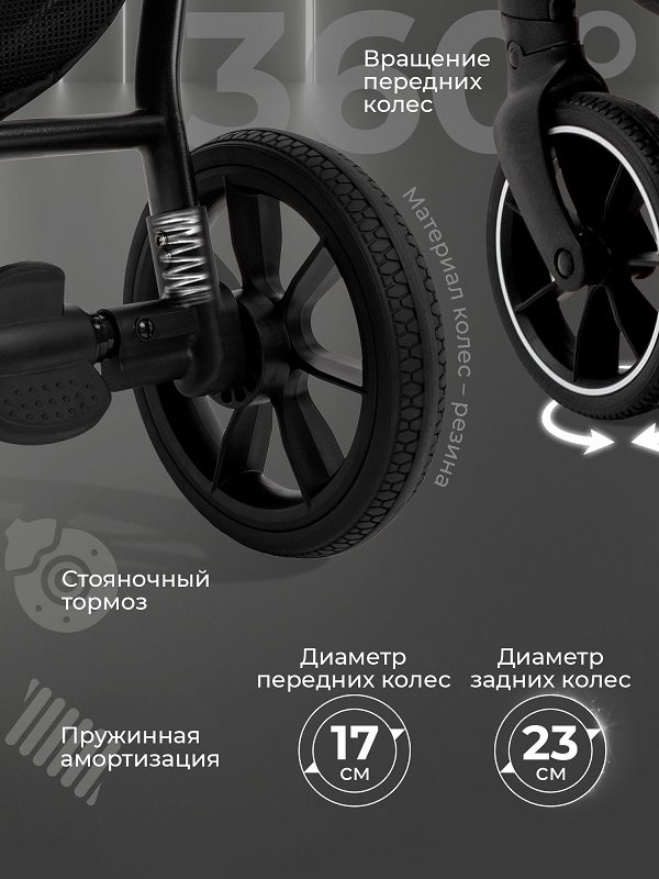 - Большие колеса из PU материала обеспечивают легкость преодоления любых дорожных неровностей.