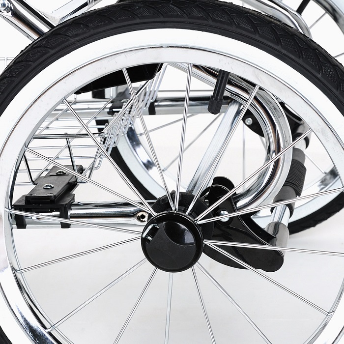 - Колёса могут быть двух размеров 12 дюймов - 30 см или 14 дюймов - 36 см. Диски металлические, покрытые хромом.