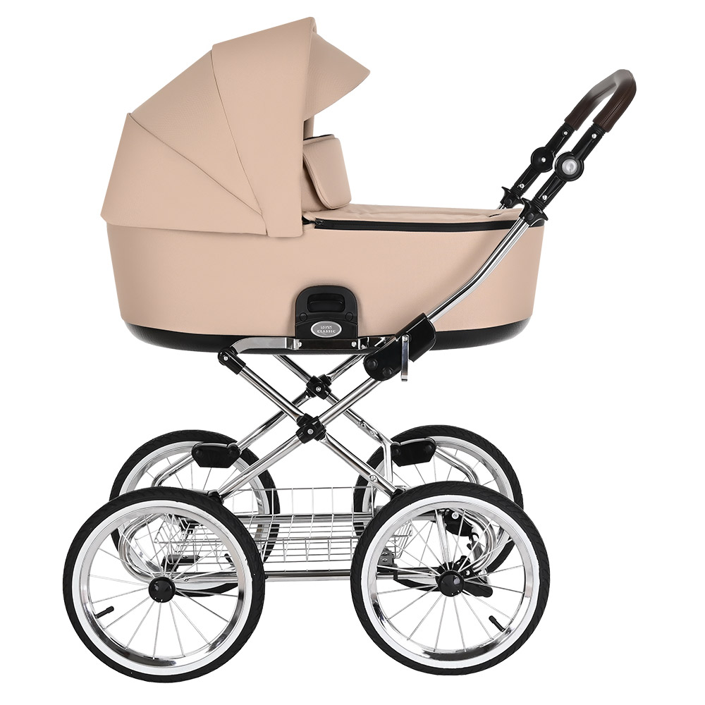 Коляска Roan Bass Next Classic 1 в 1 (Роан Басс Некст Классик) - элегантная коляска для ребенка с рождения до примерно 1 годика. Модель представлена в строгом стиле на хромированной классической раме с большими надувным колесами. Роскошные расцветки подчеркивают статусность модели.