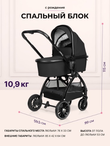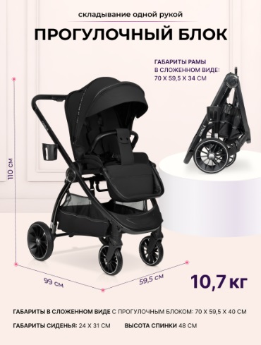 - Габариты коляски в прогулочном блоке: 99 x 59.5 x 110 см