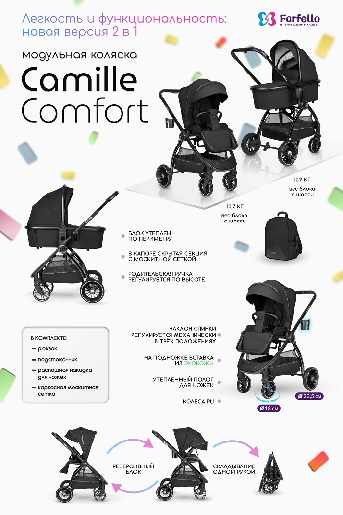 Особенности коляски Farfello Camille Comfort 2в1 :