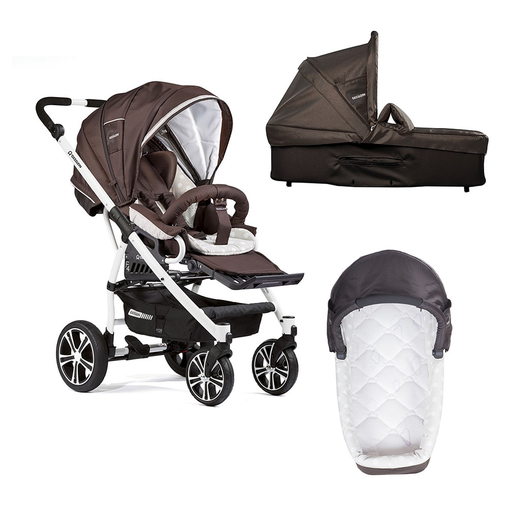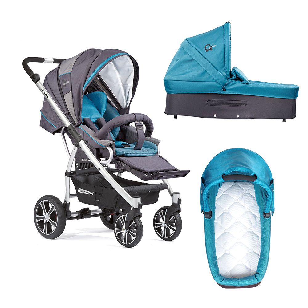 Отдельно как аксессуар для коляски можно приобрести комплект колес Gesslein большие по диаметру колеса, что обеспечит лучшую проходимость коляски. На грунтовых дорогах ваша коляска с четырьмя большими фиксированными колесами скользит особенно легко, а при прогулке по магазинам, в свою очередь, она намного маневреннее с поворотными передними колесами