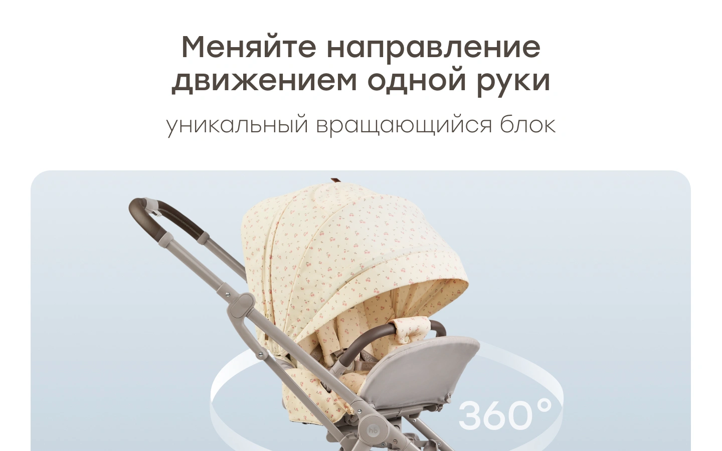Поворотное, съемное сидение позволит быстро поменять направление сидения даже во время прогулки.