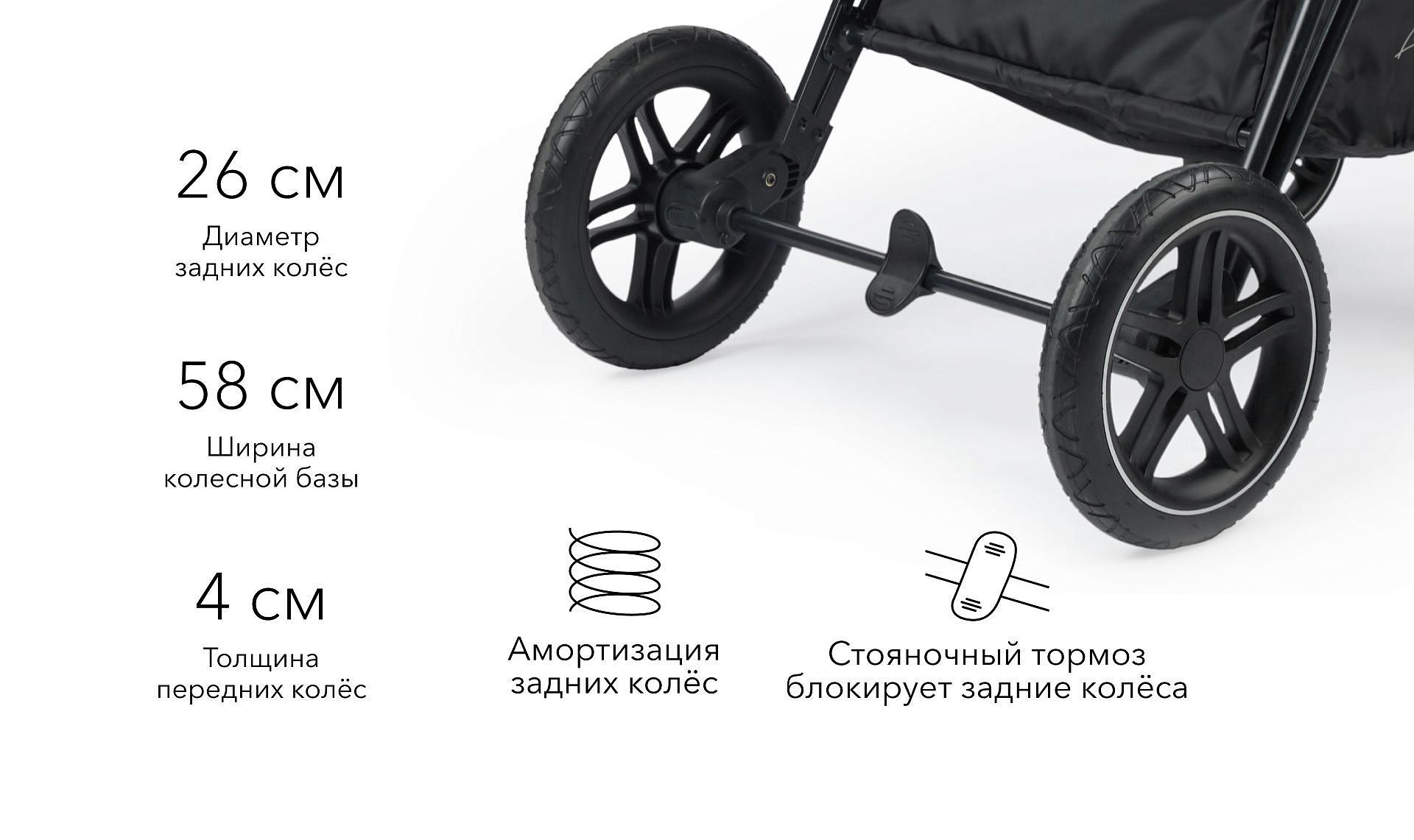 Увеличенные колеса с мягким наполнителем ЭВА делают коляску проходимой и устойчивой на любом покрытии