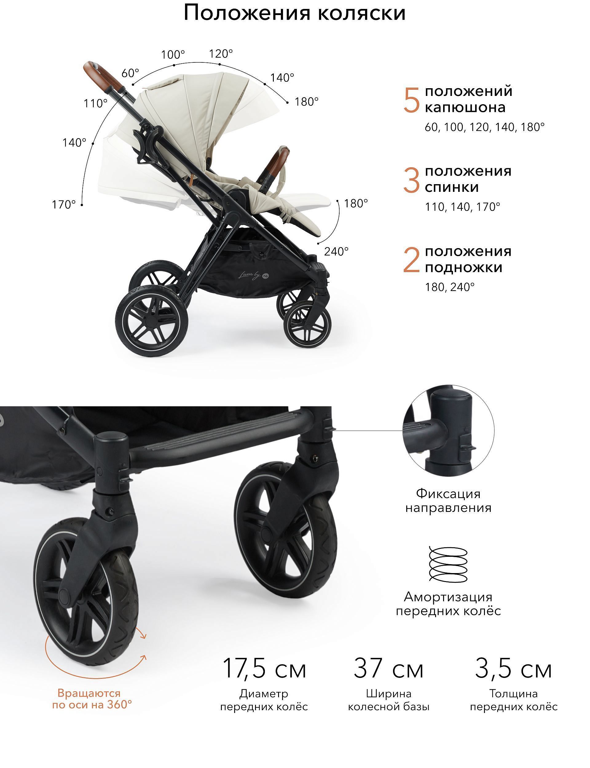 2 положения наклона подножки – 180ᵒ для удобства во время сна и 240ᵒ для прогулок в сидячем положении.