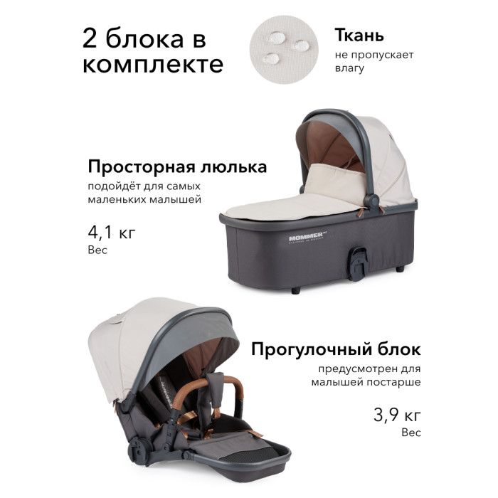 Коляска 2 в 1 (2 блока): просторная люлька и комфортный прогулочный блок
