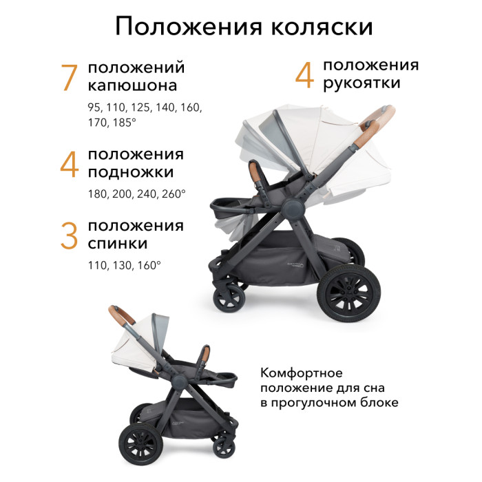 Коляска оснащена регулируемой по высоте рукой, что позволит настроить коляску под рост родителей. Удобная корзина для покупок . Для прогулок в любую погоду предусмотрены все необходимые аксессуары.