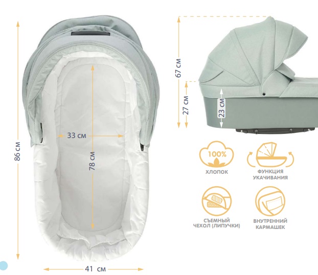 - Мягкая качественная обивка внутри люльки, съемная для стирки.