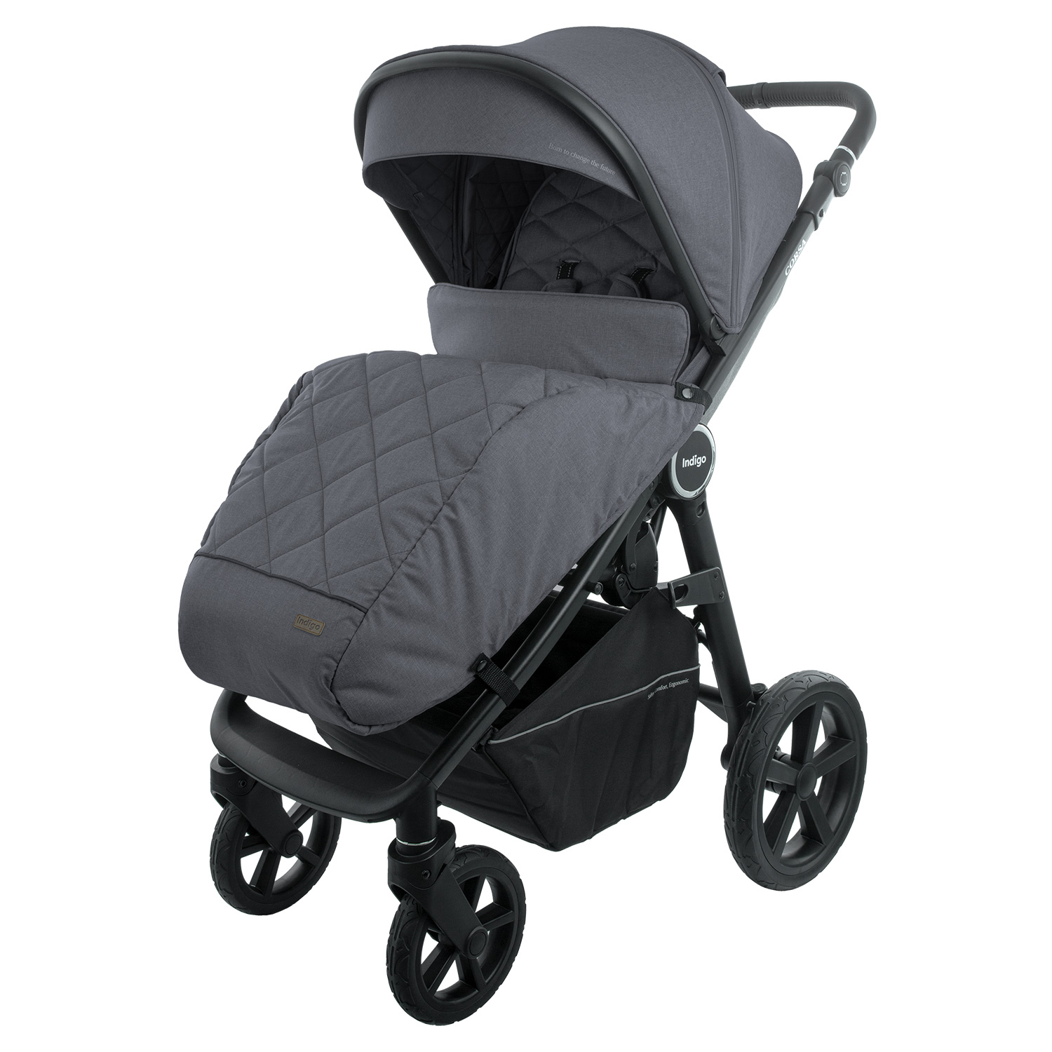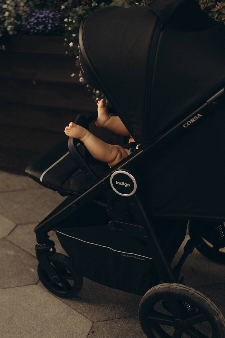 Коляска Indigo CORSA (Индиго корса) - всесезонная прогулочная коляска с большим и широким спальным местом, регулируемой амортизацией и большими резиновыми колесами. Коляска создана, чтобы гулять в любую погоду, по любым дорогам и бездорожью, даря ребенку комфорт и безопасность. Коляска утепленная, внутри капюшона и внутри обивки присутствует синтепон. Сидение коляски просторное, шириной 37 см, что позволит ребенку чувствовать себя комфортно даже в очень объемной одежде. Длина спального ложа составляет 92см , давая ребенку возможность комфортно спать на улице длительное время. Регулировка спинки по высоте осуществляется с помощью рычага одной рукой, от сидячего до горизонтального положения. У коляски большой роскошный капюшон до бампера с несколькими секциями и смотровым окошком на магните , как у колясок премиум сегмента. В задней части капюшона расположена вентиляционная секция для прогулок в теплое время года и небольшой кармашек для важных мелочей. Утепленная накидка на ножки позволит укрыть ребенка от ветра и создать комфортную температуру внутри коляски.